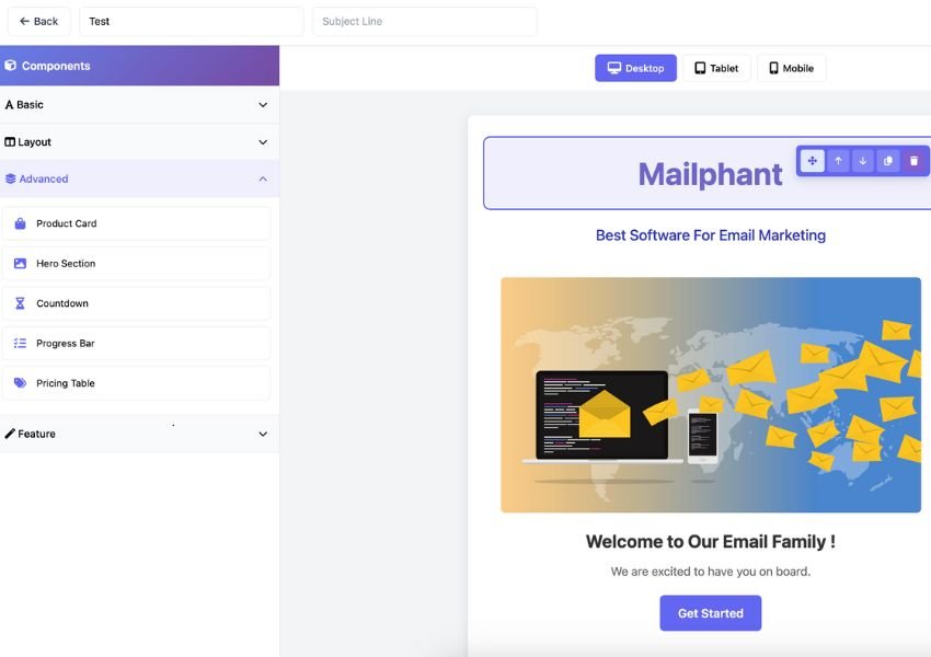 Design Email Campaigns Faster with Mailphant’s Drag & Drop Editor